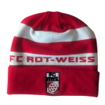 Stylische Strickmütze mit Umschlag – auf der Vorderseite mit gewebtem FC RWE Patch. Perfekt für kühle Tage und ein dezentes Fan-Statement.